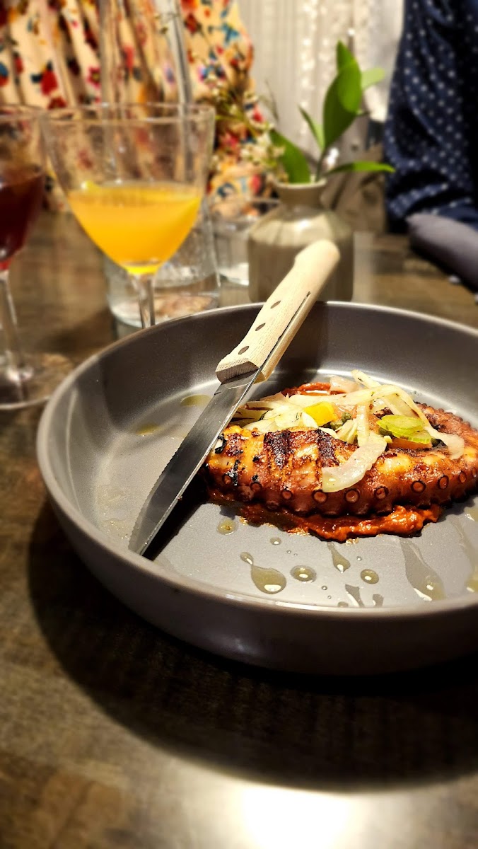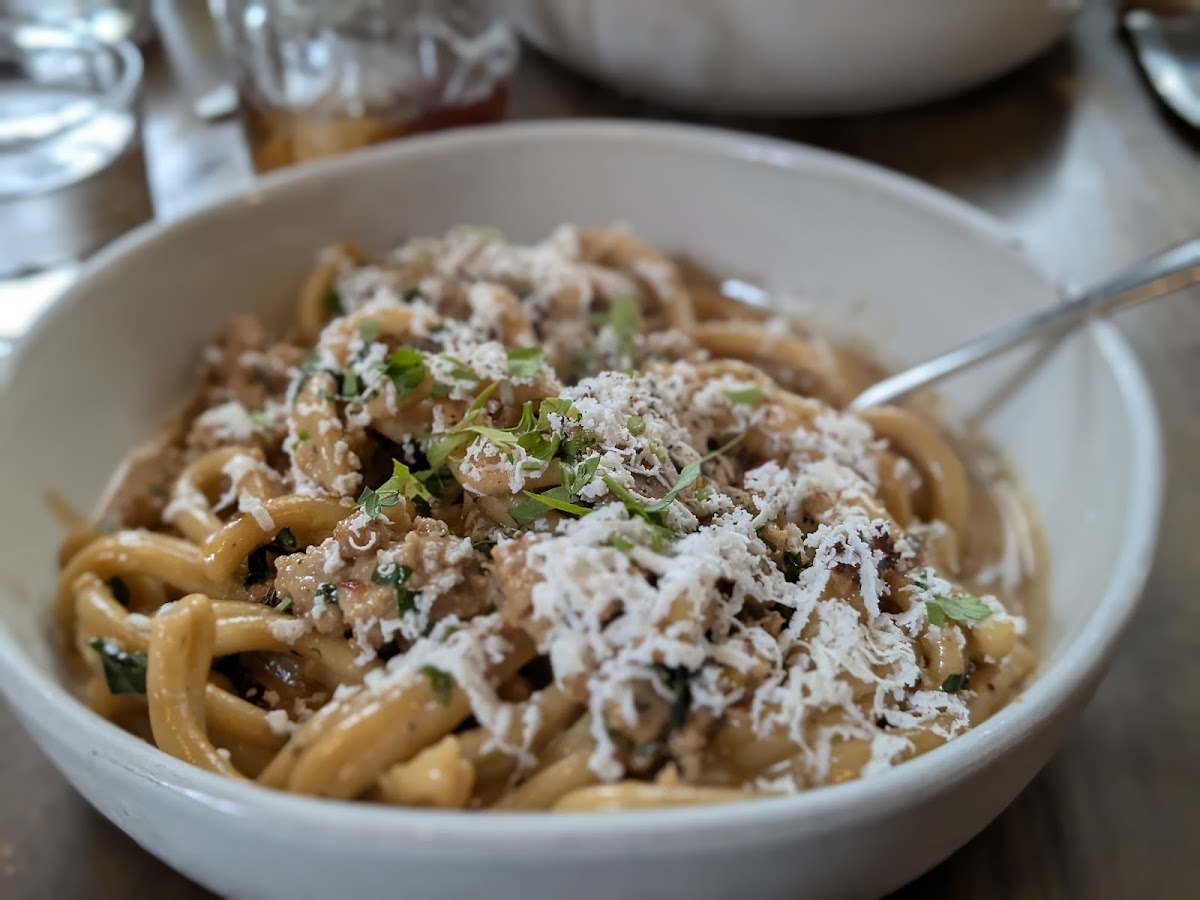 We really enjoyed dining at the bar, where Tracy mixed superb cocktails and took care of our special vegetarian and other needs graciously. Our favorite items included the burnt carrots and the seasonal peach and tomato burrata salad, but the homemade pastas did not disappoint in any way. It can be difficult to get a a table in this small and intimate restaurant, so reserve ahead if you can. The atmosphere was relaxed, and it was easy to talk and hear despite the lively pace of things. We have a new favorite restaurant and will definitely be going back!